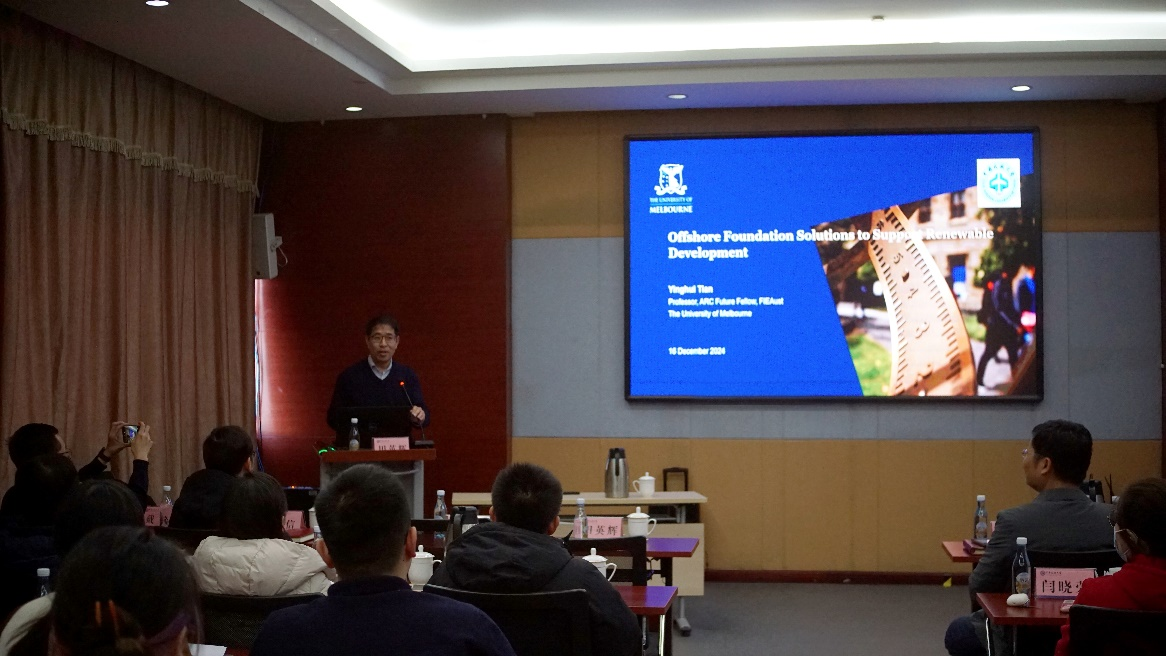 2024年12月16日,澳大利亚墨尔本大学Yinghui Tian(田英辉)教授莅临我校,在学术交流中心第一会议室为我校师生主讲题为“Offshore Foundation Solutions to Support Renewable Development”的学术讲座,本讲座是“交通沙龙系列”论坛第四十期。学院院长汤新民教授、土木与机场工程系主任黄信教授、程国勇教授、部分骨干教师、研究生、本科生近百人聆听了本次讲座,讲座由交通科学与工程学院戴轩副教授主持。