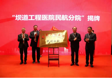 在与会嘉宾和线上嘉宾的共同见证下,王复明院士、丁水汀校长、李忠献校长、凌建明院长共同为坝道工程医院民航分院揭牌。