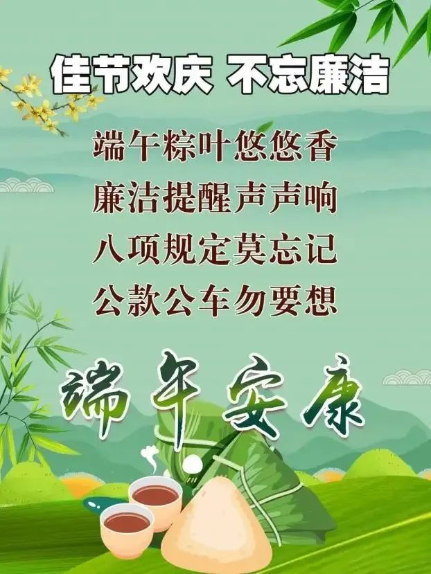 端午节将至,希望广大干部职工时刻紧绷纪律之弦,严格遵守中央八项规定及其实施细则精神,坚守廉洁底线,不碰“红线”、不触“高压线”,坚决防范和抵制“四风”,过一个安全、文明、廉洁的端午节。