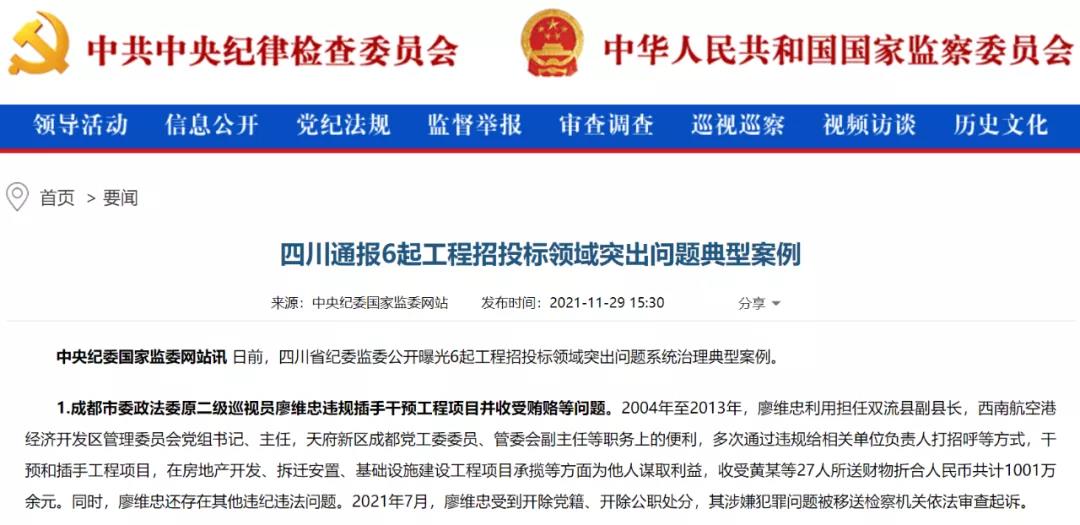 四川省纪委监委日前公开通报6起工程招投标领域突出问题,多名党员领导干部因违规插手干预工程项目并收受贿赂被查处,其中3人收受贿赂均超过1000万元。工程招投标领域的突出问题,危害甚大,必须采取有效措施,管住违规插手干预的任性之手,防止“工程上马、干部落马”。