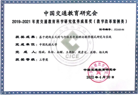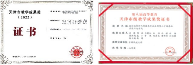 获天津市教学成果一、二等奖(图4);校企联合出版专业核心课程教材14部(图5);飞行理论教学改革成果纳入天津市教育科学研究优秀成果汇编推广(图6);获评中国交通教育研究会研究优秀成果三等奖(图7); “党建+思政育人项目”获批天津市“三全育人”优秀工作案例;2021、2022年连续两年软科中国大学飞行技术专业排名第一(图8)。