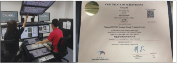 为促进“双师型”师资队伍建设,出台了《飞行技术专业教师授课准入条件》,将飞行证照相关资质作为任课教师门槛。委派专业教师、飞行教员赴企业学习波音 737NG、空客320等主流机型理论,开展定期互访研讨,增强教师专业和实践能力,如图1-3所示。