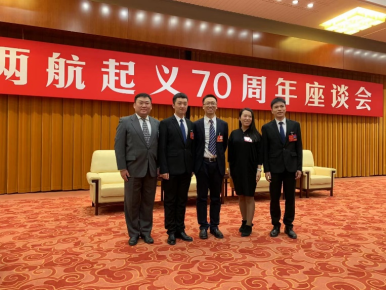 图9:胡琪涛(左二)和李明财(右一)作为民航青年学子代表参加座谈会