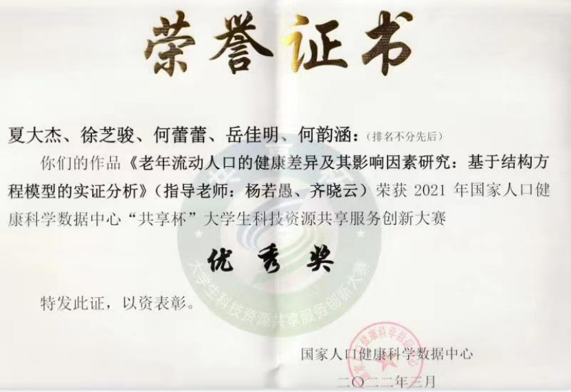 2022年1-3月,指导学生参加“共享杯”创新大赛,分获优秀奖。