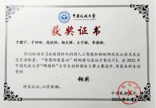 2022年1-3月,指导学生参加“共享杯”创新大赛,分获三等奖,并被推荐至国赛。