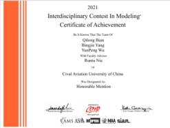 13.伍云鹏,2021年获得美国大学生数学建模竞赛国家级二等奖。