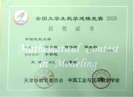 17. 伍云鹏,2020年获得“高教社杯全国大学生数学建模竞赛天津市二等奖