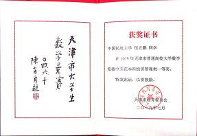 12.罗斌,2021年获得全国大学生数学建模竞赛天津赛区一等奖。