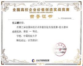14.伍云鹏,2020年获得“全国高校企业价值创造实战竞赛校内一等奖