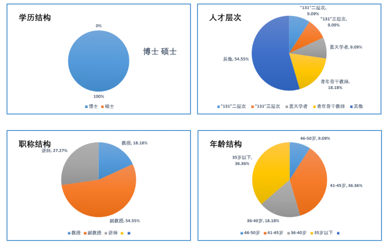 现有专业教师23人,其中教授4人,副教授13人,讲师6人,博士学位占比100%,45岁以下教师占比92%。现有天津市“131”人才第二层次2人、第三层次2人,中国民航大学蓝天学者2人、青年骨干教师4人。近三年专业教师获国家级、省部级科研项目资助20余项,发表高水平论文近60余篇。