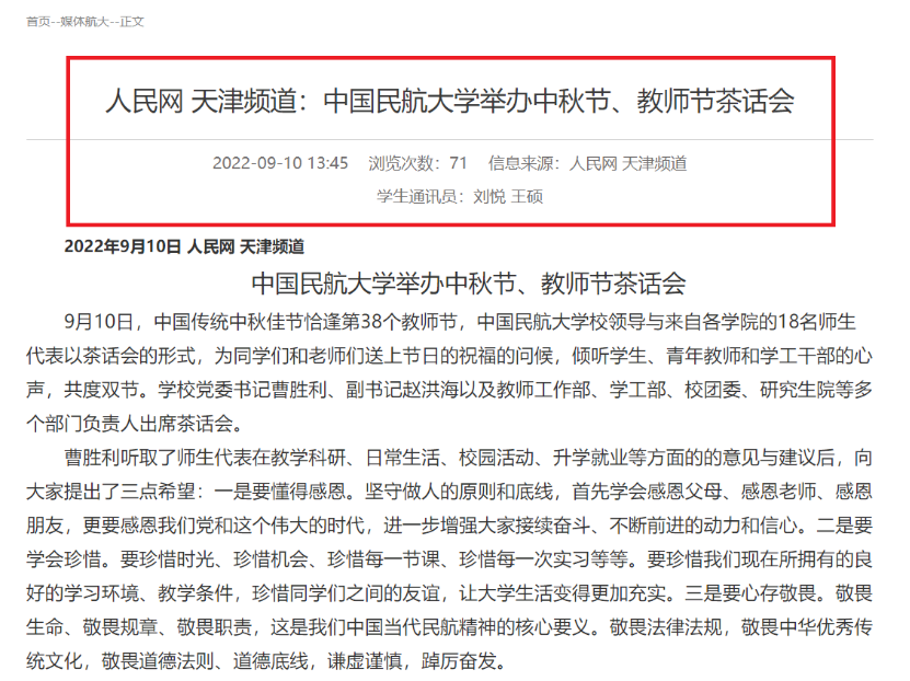 入学仅半年时间,学生在人民网、民航网、校园网首页发表文章9篇,获得人文知识竞赛校级二等奖等奖励7项。