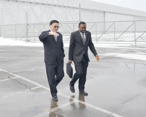 2014年,马涛与时任国际民航组织理事会主席伯纳德·阿留在交流看法