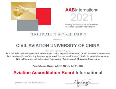 2021年:通过国际航空工程教育认证(AABI)