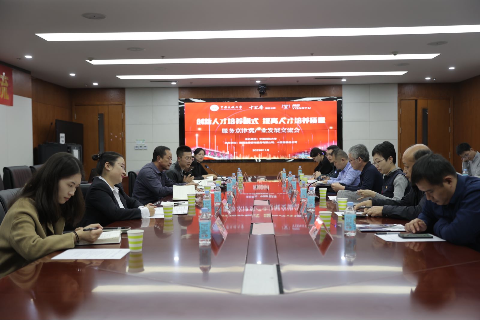 随后,教务处党支部与沧州市各单位代表以及相关法律咨询企业开展调研座谈。教务处党支部书记冯兴杰向相关企事业单位代表介绍中国民航大学校史、办学规模以及人才培养基本情况,对促进校企间的合作与交流、深化产教融合、提高人才培养质量开展研讨,与企业负责人就人才需求、实习就业、校企合作等方面进行深入交流。相关企事业单位十分欢迎中国民航大学学生前来实习、就业,对学校重视教学与人才培养、关心学生实习就业、积极走访联系企业的行为表示赞赏,希望与学校建立更加紧密的合作关系。