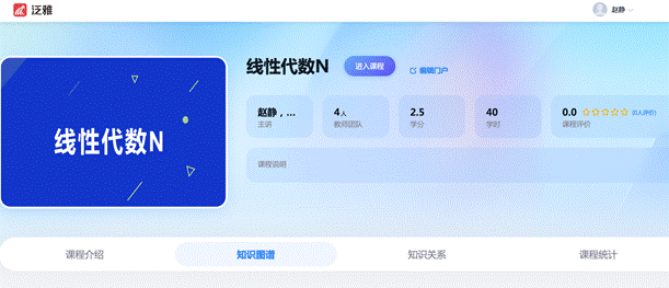 2007年评为天津市精品课程,2013年在CDIO试点班实施讨论课教学,2020年面向新工科和CDIO试点班开设“线性代数N”,增加应用案例和思政案例,建设全程教学视频、应用案例和思政案例微视频等教学资源,开展混合式教学,采取全过程多元化评价方式。2021年获批天津市一流本科建设课程,2022年在高等教育出版社出版教材和数字课程。2023年建成校课程思政示范课程,教材推荐认定天津市高校课程思政优秀教材。2023年《线性代数》课程构建知识图谱,打破教材章节边界,梳理知识点之间的逻辑关系,建立系统化知识点体系,实现内容可视化、结构化,满足学生个性化、选择性学习需求。