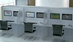 机场现场运行控制模拟机可支撑管制规则与程序、场面交通管制等课程。通过该设备,学生能够根据服务器终端实时动态发出的航班运行动态、机场道面状况 通告、各相关部门通告信息等有关机场实际运行的所有模拟数据,进行现场指挥系统的现场监控、运行保障、机位分配、应急救援、滑行指挥等实验项目的训练,使 学生对机场现场运行形成全面清晰认识,加深对机场现场运行协调、指挥、机位分配、现场监管和应急救援等基本知识的理解,掌握机场现场运行指挥的基本能力。