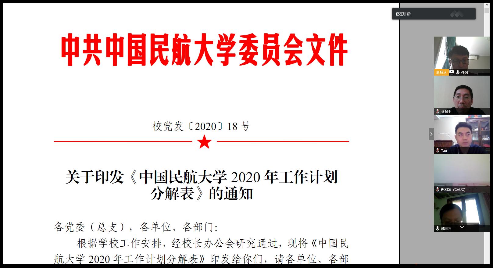 以“学习学校2020年工作计划,共建交通管理新专业”为主题,空管学院飞行运行控制系于4月3日通过腾讯会议平台开展党日活动,校长助理杨新湦作为联系教工党支部的两委委员参加了本次党日活动。在活动中,支部成员就如何在学校年度工作计划的指引下更好地完成专业建设发表了意见,并对如何更好的开展线上教学开展研讨。