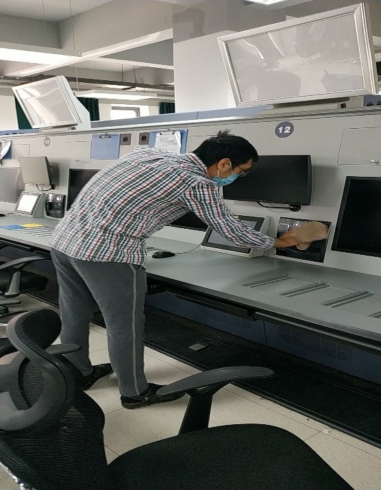 复课先净“器”,在线教学让理论课有了依托,而复课的重中之重就是如何更发挥校内各种仪器的价值。为确保学生复课后对实验室的需要,空域规划与航空情报党支部全体党员分成两组,对所属实验室重点清理。整理电线、擦拭屏幕、摆放桌椅……,弯下的腰,用过的力都体现了每位教师对专属自己舞台回归的期待,为助力学子成长的积蓄许久的力量。