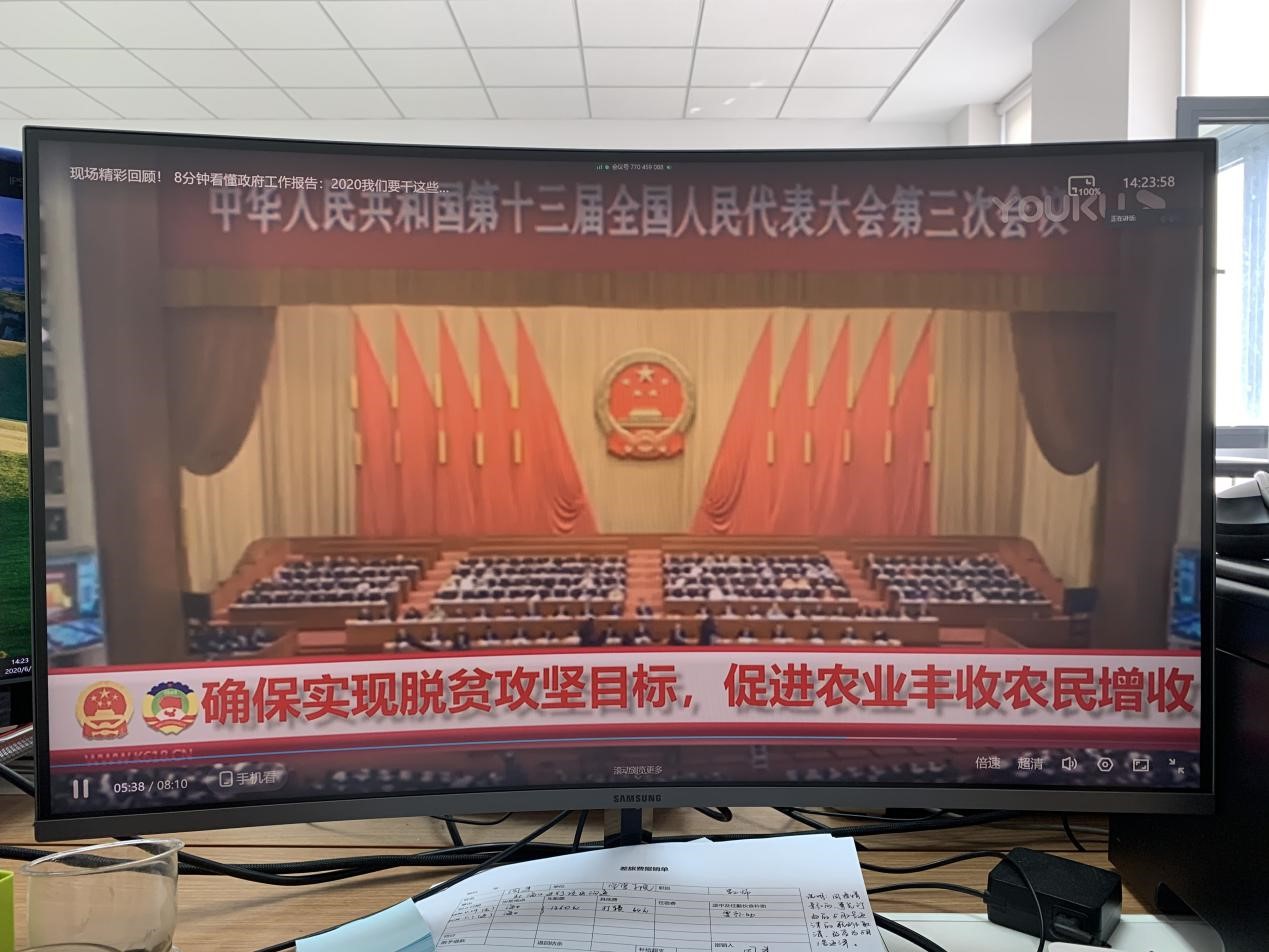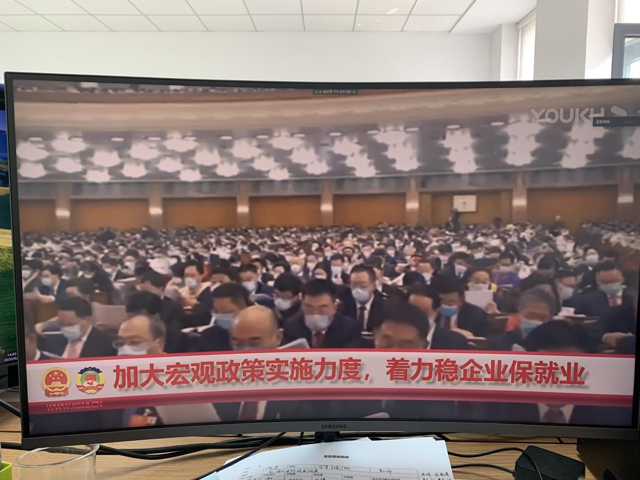 然后,大家认真听取了李克强总理于2020年5月22日在第十三届全国人民代表大会第三次会议上所做的政府工作报告。李克强总理先对2019年和今年以来的工作进行了回顾,然后提出了今年发展主要目标和下一阶段工作总体部署,提出今年要优先稳就业保民生,稳住上亿市场主体,尽力帮助企业特别是中小微企业、个体工商户渡过难关,加大减税降费的力度;坚决打赢脱贫攻坚战,努力实现全面建成小康社会目标任务;要打好蓝天、碧水、净土保卫战,实现污染防治攻坚战阶段性目标;加强金融等领域重大风险防控,坚决守住不发生系统性风险底线;下一阶段要毫不放松常态化疫情防控,抓紧做好经济社会发展各项工作。