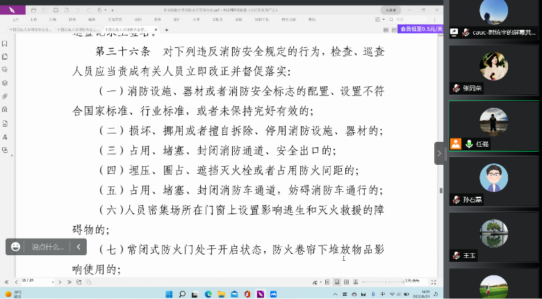 为认真贯彻落实习近平总书记关于安全生产重要论述,强化“人民至上、生命至上”理念,深入推进消防安全工作,切实提升党支部服务能力,6月24日下午,空管学院飞行运行控制系教工党支部在空管楼C410开展了 “共筑心中防火墙,搭起生命安全网”线上线下联合主题党日活动,为运行系党员教师宣传消防安全知识。因疫情防控影响,部分党员教师通过腾讯会议同步参加,实现线上线下联合党日活动。