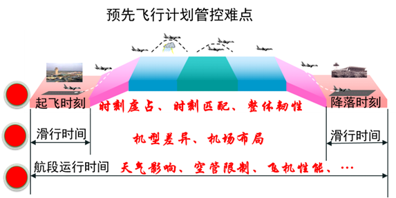 在上述研究与应用的基础上,围绕预先飞行计划管控过程中,城市对标准航段时间、制定航班时刻表和分配公平运输航空中时刻的需要,重点在以下方向开展技术攻关:
