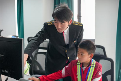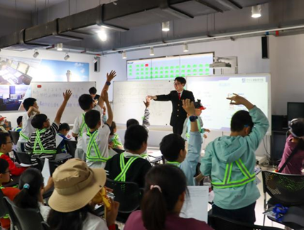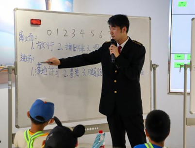 此外,讲解员还组织了陆空通话的模拟演示,鼓励孩子们积极参与,上台模拟对话,并对表现突出的学员进行了奖励。