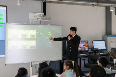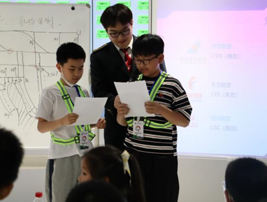 在活动中,讲解员付天硕和王康华同学通过播放三个精心挑选的视频,带领孩子们走进了空中交通管制员的世界,揭开了“空中交警”的神秘面纱。他们用生动的语言和形象的演示,为孩子们讲解了陆空通话的要点,包括通话中可能遇到的问题和正确的发音技巧。