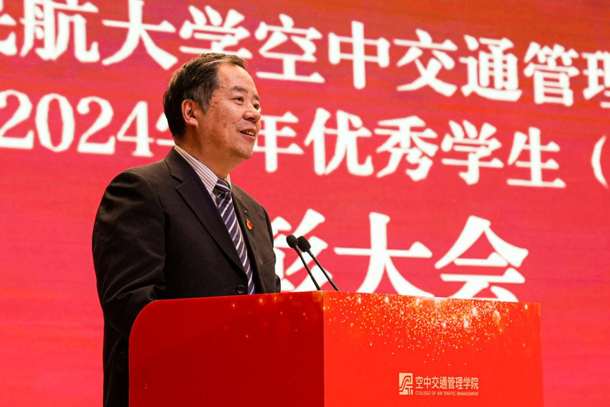 院长赵嶷飞在讲话中对获奖者表示了热烈的祝贺,对空管学子在过去一年取得的成绩与进步给予了肯定,并对全院师生的辛勤付出、潜心育人表示了衷心的感谢。他鼓励同学们要向榜样看齐,明确目标、刻苦学习、锐意进取,努力练好人生和事业的基本功。他指出,同学们要以更高标准要求自己,真抓实干,勤勉不辍,在新时代的新机遇中笃学力行,练就青春奋斗本领,彰显青春奋斗底色。他表示学院将进一步以人才培养为中心工作,加强学科专业建设,优化培养方案,营造充满活力、学风优良、创新包容的学习环境,为同学们成长成才搭建平台,努力培养具有较强工作实践能力、问题研究能力、国际交流能力的民航高素质人才。