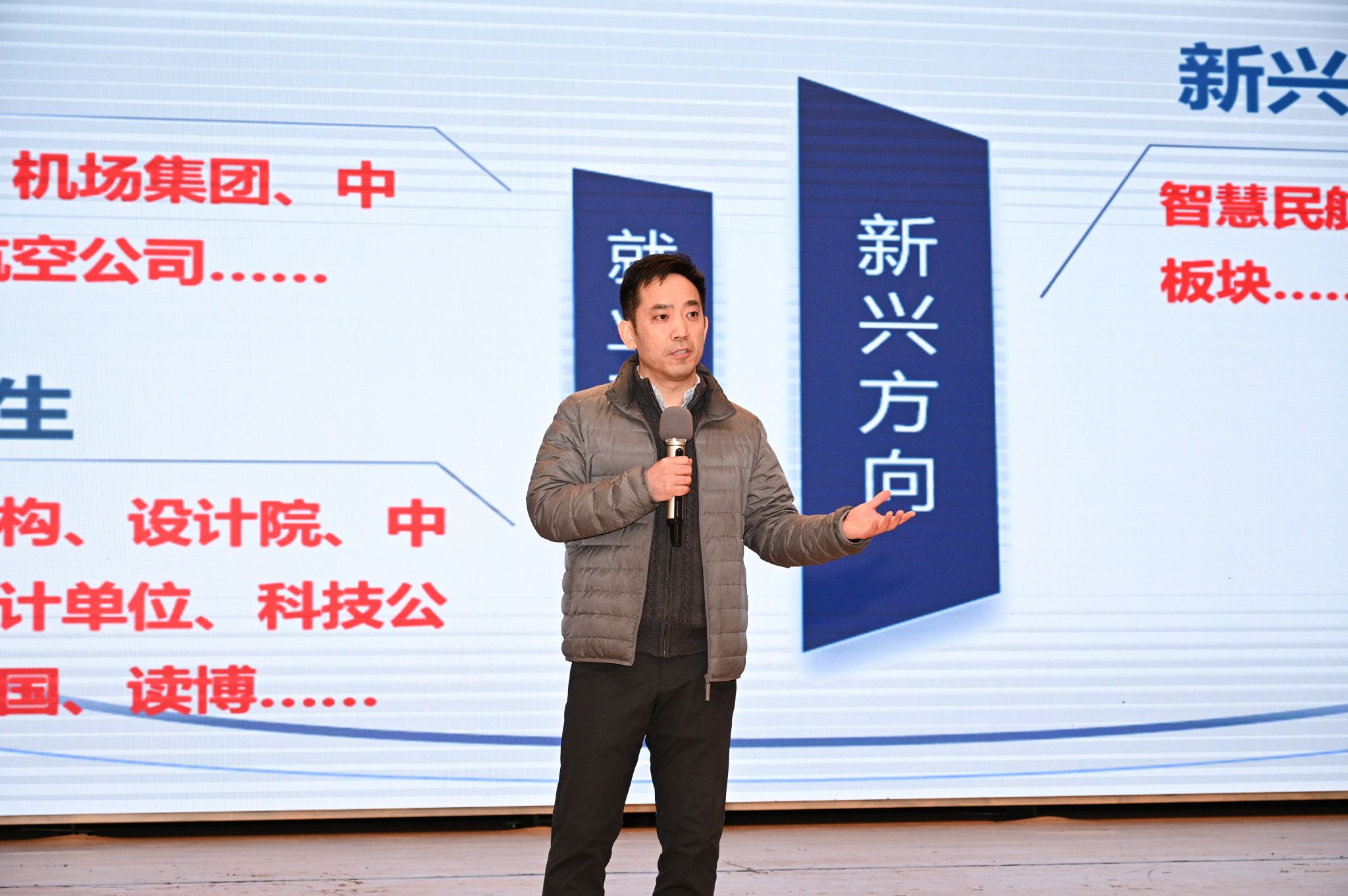 接下来,刘永欣副院长为同学们作主题为《我们的路在何方?-ICAO英语、三校联考及国际化人才养成之道》的讲座,详细介绍了三校联考的背景及其重要性,特别是对考试内容和考核方式进行了深入讲解。他强调,理论部分注重考查学生对基础知识的掌握程度和分析能力,而实践部分则更侧重于考察实际操作能力和应变能力。从过去三年的招聘数据和我院空管系统签约人数为切入点,为同学们讲述了当前管制专业学生的就业形势,以及学校当前的定位及未来发展方向。他强调,无论是空管系统、机场集团、中小机场、航空公司,还是新兴的专业方向,都对英语水平有着较高的要求。