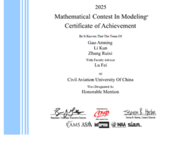 近日,2025年度美国大学生数学建模竞赛(MCM/ICM)(以下简称“美赛”)获奖名单揭晓,中国民航大学空中交通管理学院喜获佳绩。