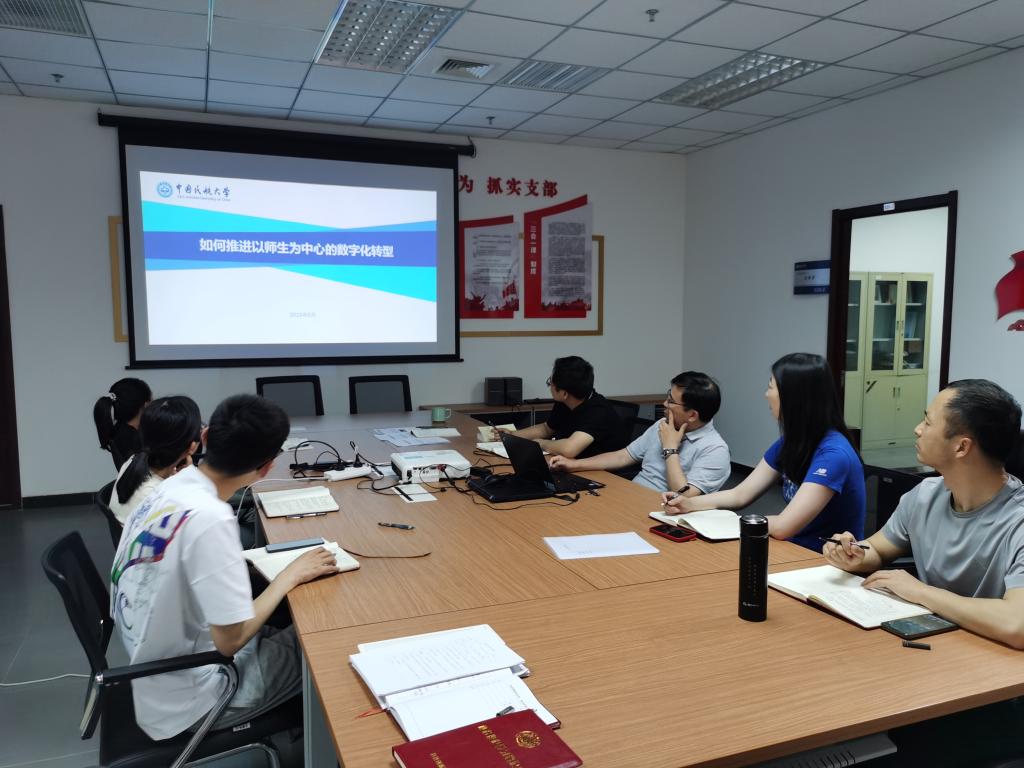 网络中心党支部书记主讲《如何推进以师生为中心的数字化转型》专题党课,全体党员就学校调研工作方案中“聚力打造数字校园、智慧校园、文明校园”,围绕信息化建设支撑学校高质量发展、基于智慧校园建设的服务管理、数字校园信息安全保障等方面的问题做深入交流讨论。