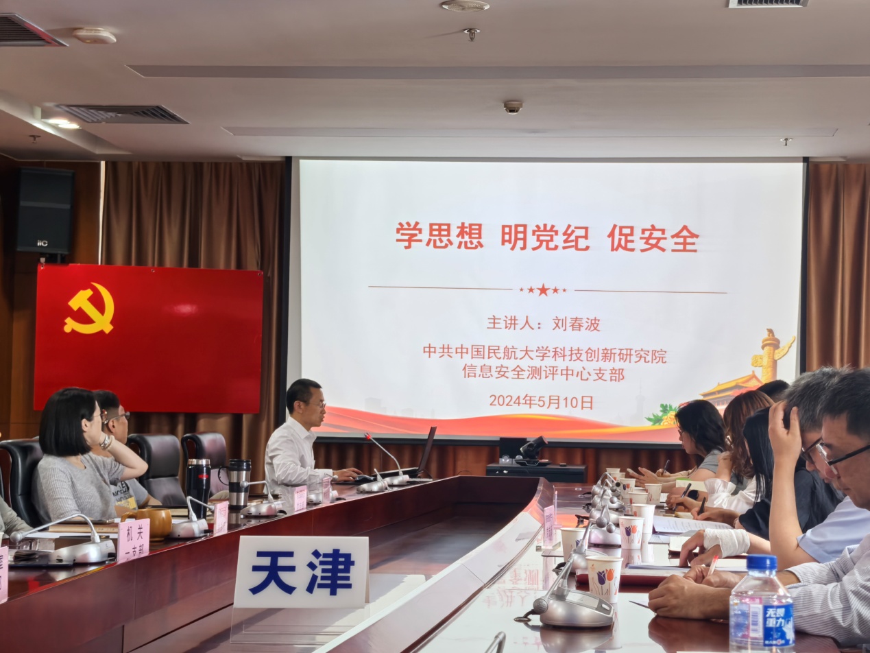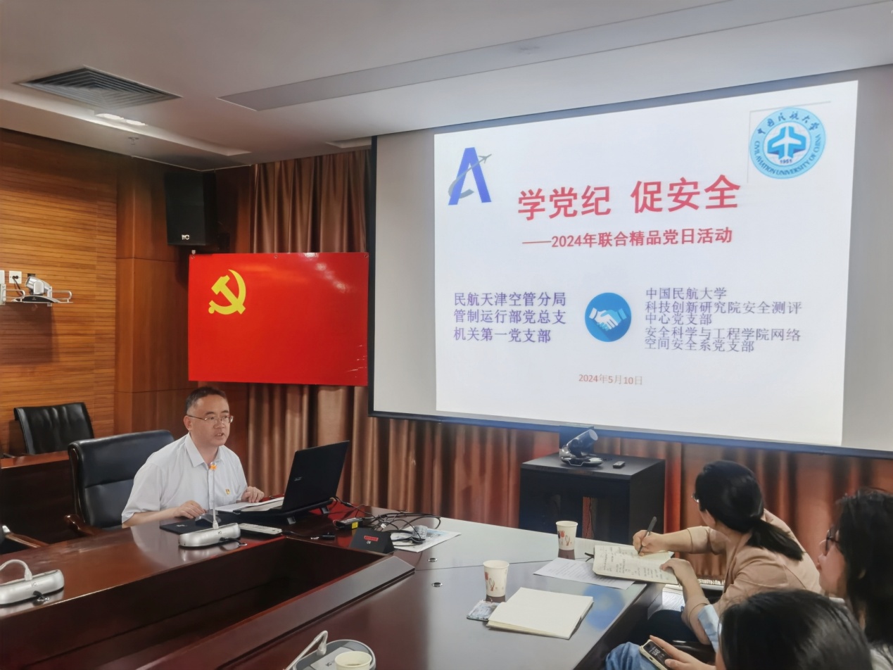 为扎实开展党纪学习教育,深入贯彻习近平总书记关于网络强国的重要思想,进一步推动产学对接、携手保障空管网络安全,510日下午,中国民航大学科技创新研究院信息安全测评中心党支部联合安全科学与工程学院网络空间安全系教工党支部,来到民航天津空管分局,与管制运行部党总支、机关第一党支部共同开展“学党纪 促安全”主题党日活动。