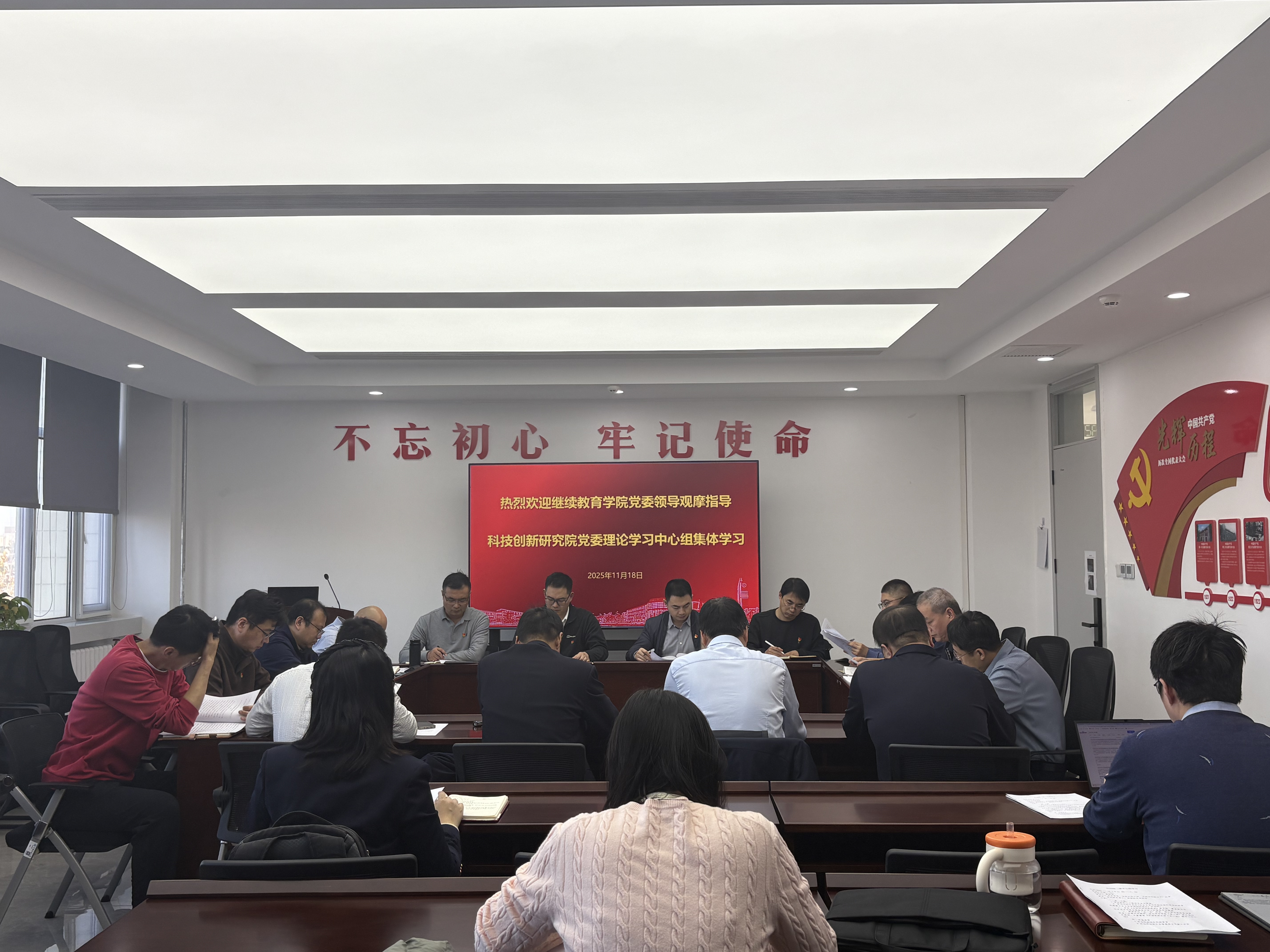 11月18日下午,科创院党委在北教一501会议室召开十一月份理论学习中心组会议,聚焦学校“双一流”建设,深入学习宣传贯彻学校第三次党代会精神。科创院党委委员、全体处级干部、各支部书记、副书记、纪委委员、各研究院负责人参会,继教院党委书记、副书记观摩指导。