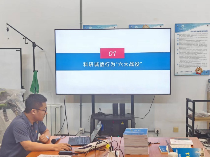 为加强师德师风建设和学术诚信建设,抵制学术不端科行为,邀请技处孔旭副处长进行了“科研诚信与学术规范”的专题讲座。孔副处长强调了学术诚信的重要性,结合实际案例阐述了学术不端行为的危害,并分享了实际工作如何做好科研诚信并防止学术不端的措施建议,从而引导师生树立科研诚信意识,共同营造风清气正的学术环境。随后,支部副书记王大蕴和学生党员潘汉源、刘金政分享了学习心得。