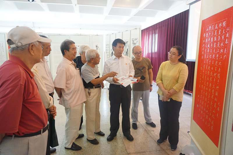 日前,在中华人民共和国成立70周年之际,中国民航大学“翰墨歌颂七十年·丹青描绘新时代”离退休老同志书画展在场外老年活动中心四楼多功能厅举办。校党委副书记赵洪海参观展览,离退休老同志代表20余人一同参观。