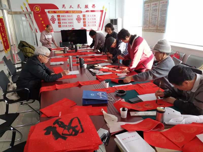 1月13日,己亥年腊月十九,中国民航大学离退教职工书画协会与工会教职工书画社团的书法爱好者来到伍麻庄村为村民“送福”。