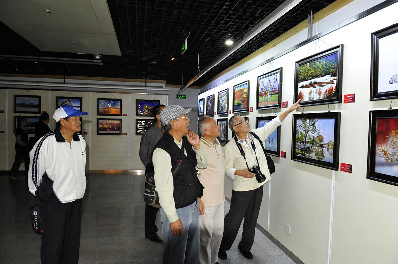 老同志们一边驻足欣赏优秀作品,一边相互交流摄影技巧,不但从优秀作品中汲取摄影经验,而且深刻体会到了我市离退休老同志高质量的摄影水平,同时,从摄影作品中深刻感受到了天津经济、社会、文化发展所取得的巨大成就。