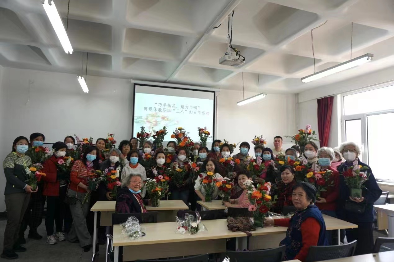 为迎接第113个“三八”国际妇女节,丰富离退休女教职工的精神文化生活,离退休职工管理处于3月8日上午在场外老干部活动中心举办了“巧手插花,魅力巾帼”三八妇女节插花活动。经前期报名,共有42名离退休女教职工参与活动。