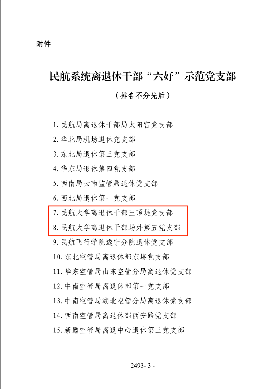 近日,民航局首批15个离退休干部“六好”示范党支部公布,我校离退处党委王顶堤党支部和场外退休第五党支部,从民航系统150多个离退休干部党支部中遴选而出获此殊荣。