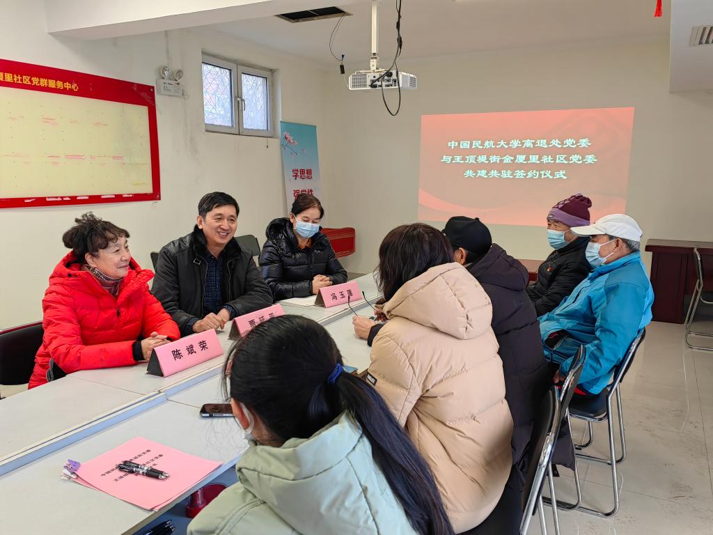 12月19日上午,离退处党委与王顶堤街金厦里社区党委签订共建协议。离退处党委领导、王顶堤党支部书记、党支部委员及党员代表出席了签约仪式。