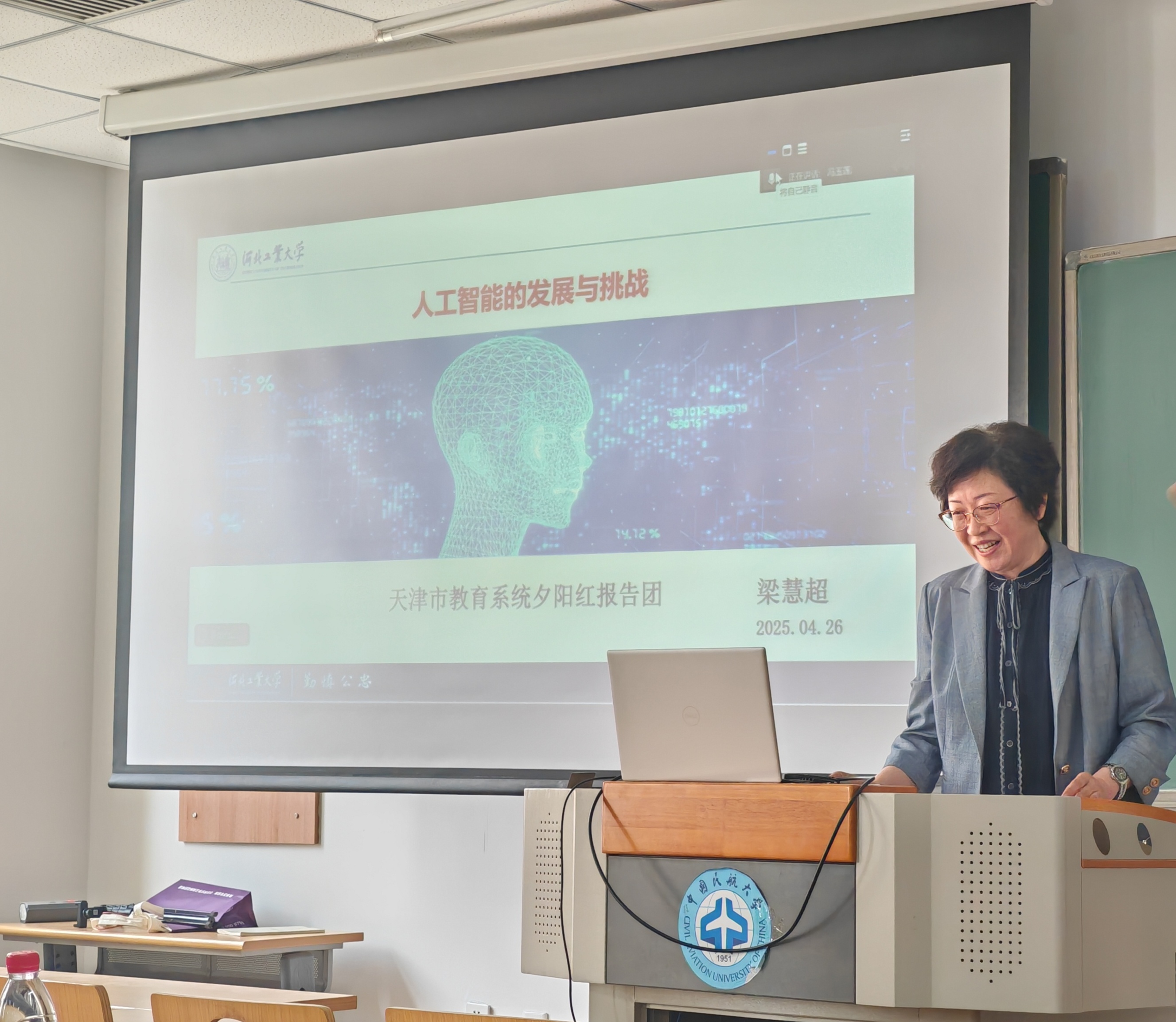 为推动人工智能知识普及,加强学术交流,校关工委联合外语学院关工委于4月26日上午邀请天津市夕阳红报告团科学精神宣讲团成员、河北工业大学梁慧超教授,在东丽校区南教 5-314及线上腾讯会议开展人工智能专题讲座,外语学院近百名学生现场聆听,退休教工近60人参与线上学习。