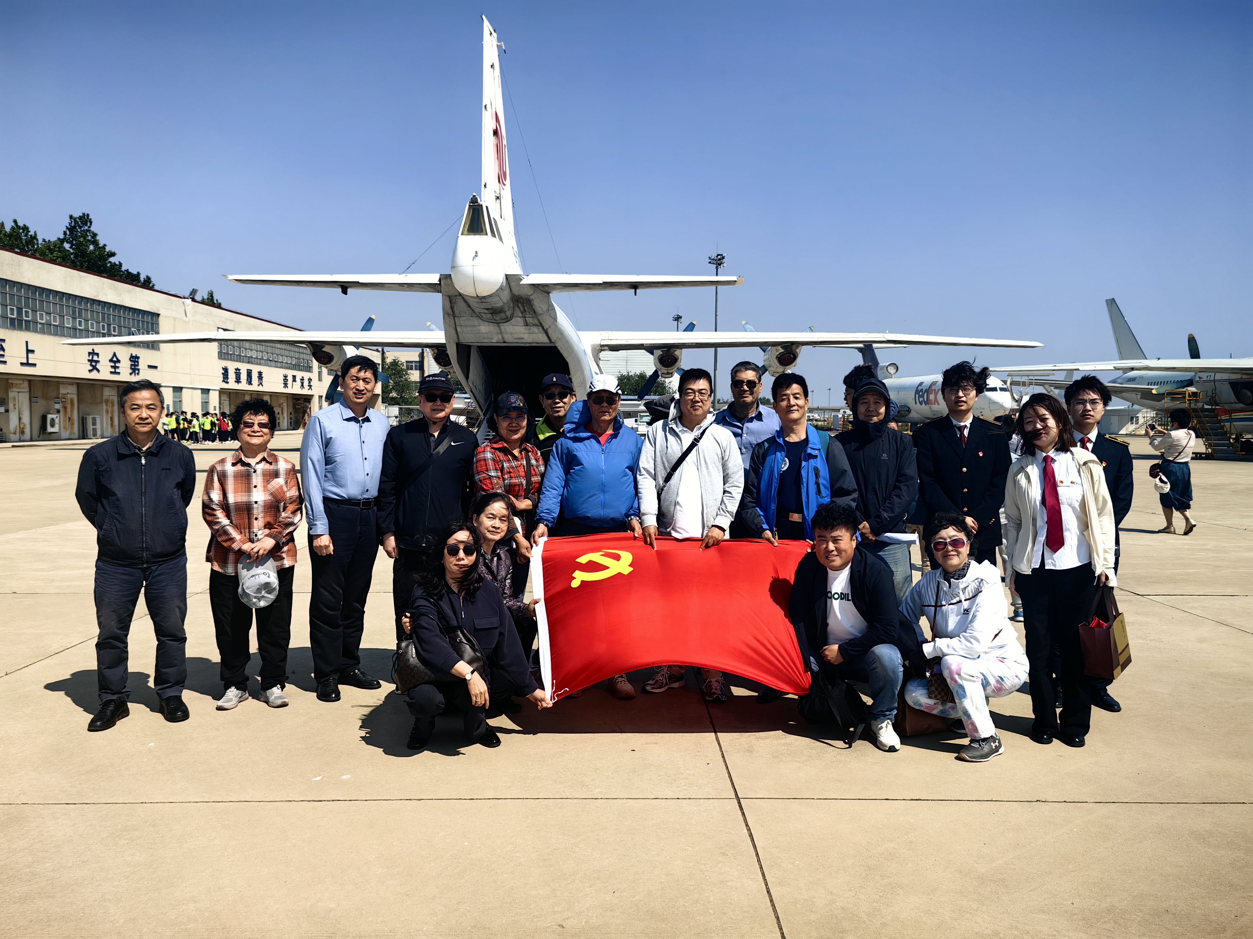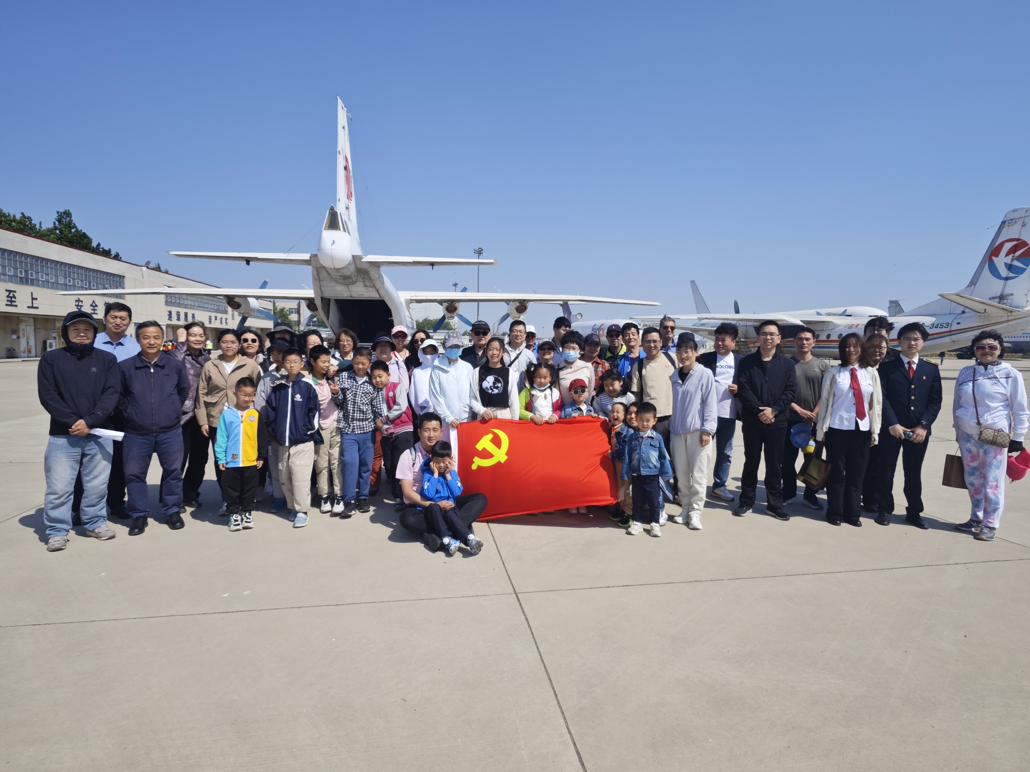 在全国第二十五个科技活动周来临之际,离退处党委王顶堤退休党支部联合工程技术训练中心党委、天津市社区矫正中心党委、金厦里社区党委等单位,于5月17日上午在我校停机坪开展“传承民航精神·共筑科技梦想”主题参观活动,来自各单位的60余名党员、社区居民及青少年参与。