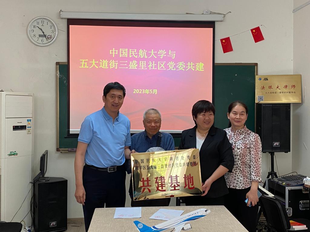 会上,双方就如何共促共建进行了深入交流和探讨,校园保障部负责人就睦南道居民区关注的物业、活动室和公共设施维修等和社区负责同志交换了意见,三盛里社区党委书记王芳对中国民航大学表达了真诚的感谢,双方达成了良好共建协议。会后,双方进行了共建基地授牌。