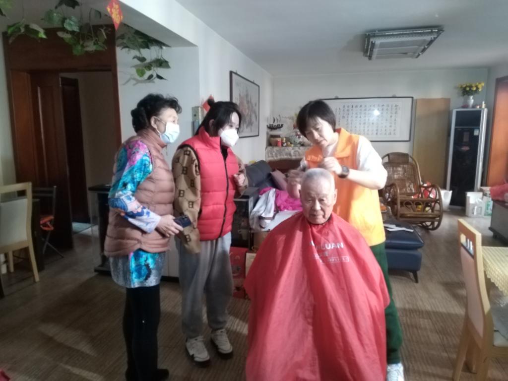 剪发后,邹先明老师满意地说,王顶堤党支部和社区党委把党的温暖送到家,急我们所需,真是雪中送炭。