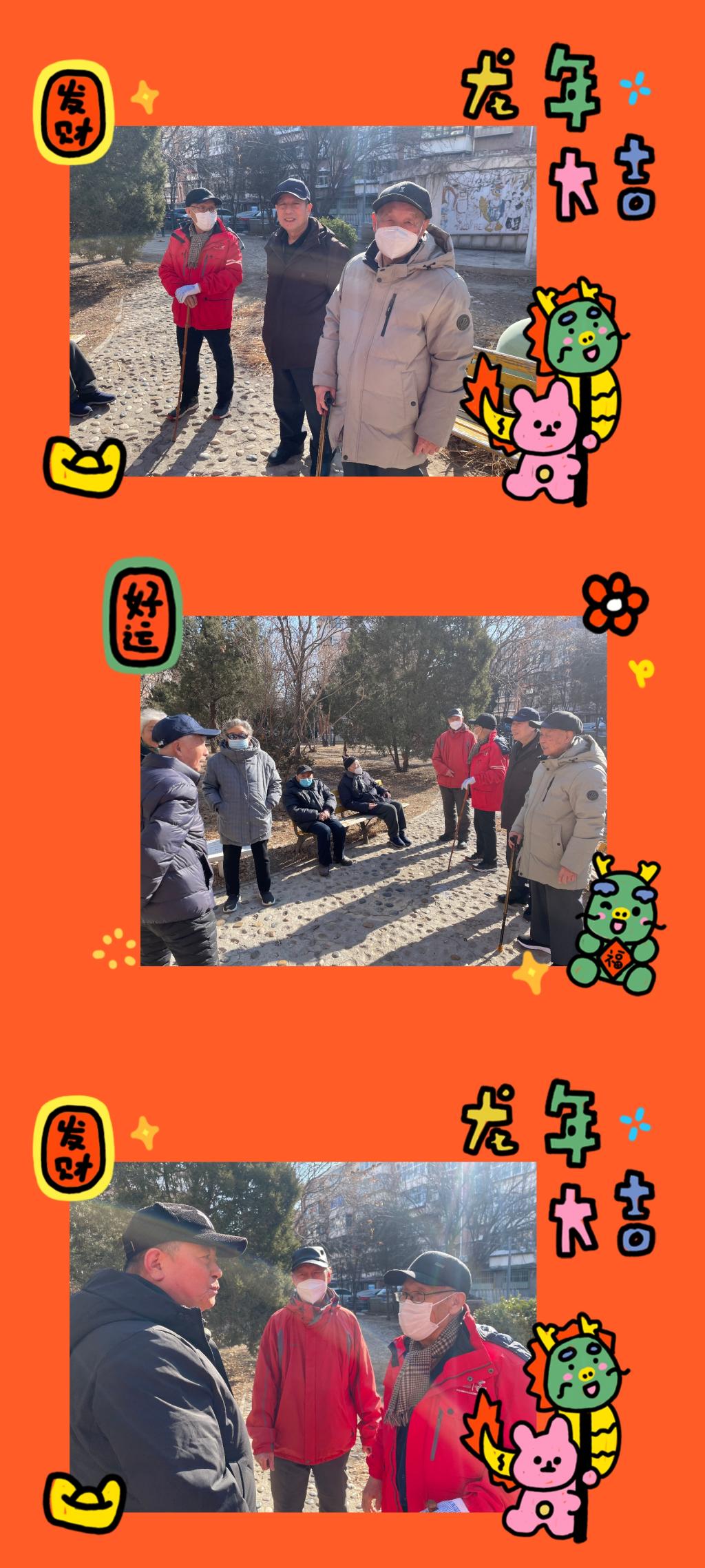 王顶堤党支部于龙年大年初一上午,在金厦里社区小花园内,组织了一次春节团拜活动。