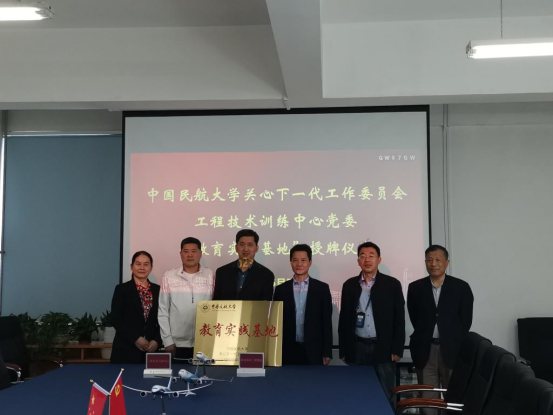 5月5日下午,中国民航大学关心下一代工作委员会教育实践基地之停机坪、发动机车间、金工实习大楼揭牌仪式在工程训练中心举行。校关工委副主任、离退处党委书记和工程技术训练中心党委书记为实践基地揭牌,并签订双方长期共建育人基地协议。我校退休教师,全国民航机务维修特聘专家、FAA认证机务维修工程师牟洪渊、焦黎明老师,以及校关工委秘书长、办公室负责人等参加了活动。