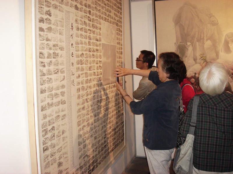 我们书画学会的老同志边欣赏不同的艺术作品,边相互探讨作品所蕴含的工致细腻的画法,有些细心的老同志还带了相机把整个展览作品拍下来,留作以后慢慢地欣赏和品位。