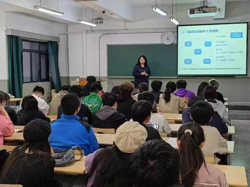 于老师首先引导同学们思考“建设航空运输强国,提升国际话语权的关键途径”,讲解如何增强航空运输强国战略国际话语权的实现方法和路径。随后向同学们介绍全球航空运输系统的组成、分工和发展愿景,分析了我国国际航空运输发展的整体形势和发展目标。同时于老师以身边人的奋斗故事和个人丰富的工作经验,鼓励同学们发愤图强,积极关注国际航空运输系统发展,培养国际视野,扩大人生格局,努力学习实践,为自我成长和民航发展奠定扎实基础。