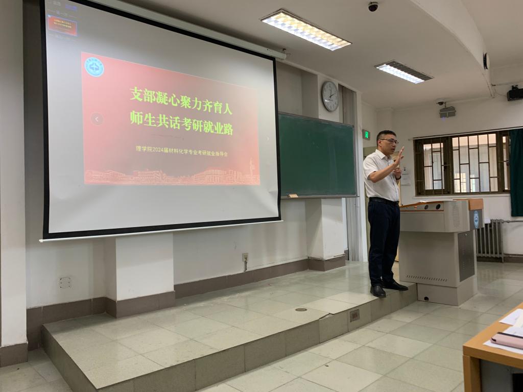 为深入开展学习贯彻习近平新时代中国特色社会主义思想主题教育,发挥支部党建工作在人才培养中的引领作用,强化支部政治功能和组织力,理学院党委化学系党支部于5月26日在南1-202举办了一场面向2024届毕业生的考研就业指导会。会议由化学系党支部书记主持,支部全体党员参加,同时邀请了物理系主任和2023届部分学生。
