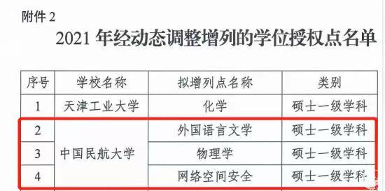 近日,国务院学位委员会正式批准天津市2021年授权学科和专业学位授权类别动态调整结果,中国民航大学理学院物理学增列成为硕士一级学科学位授权点。